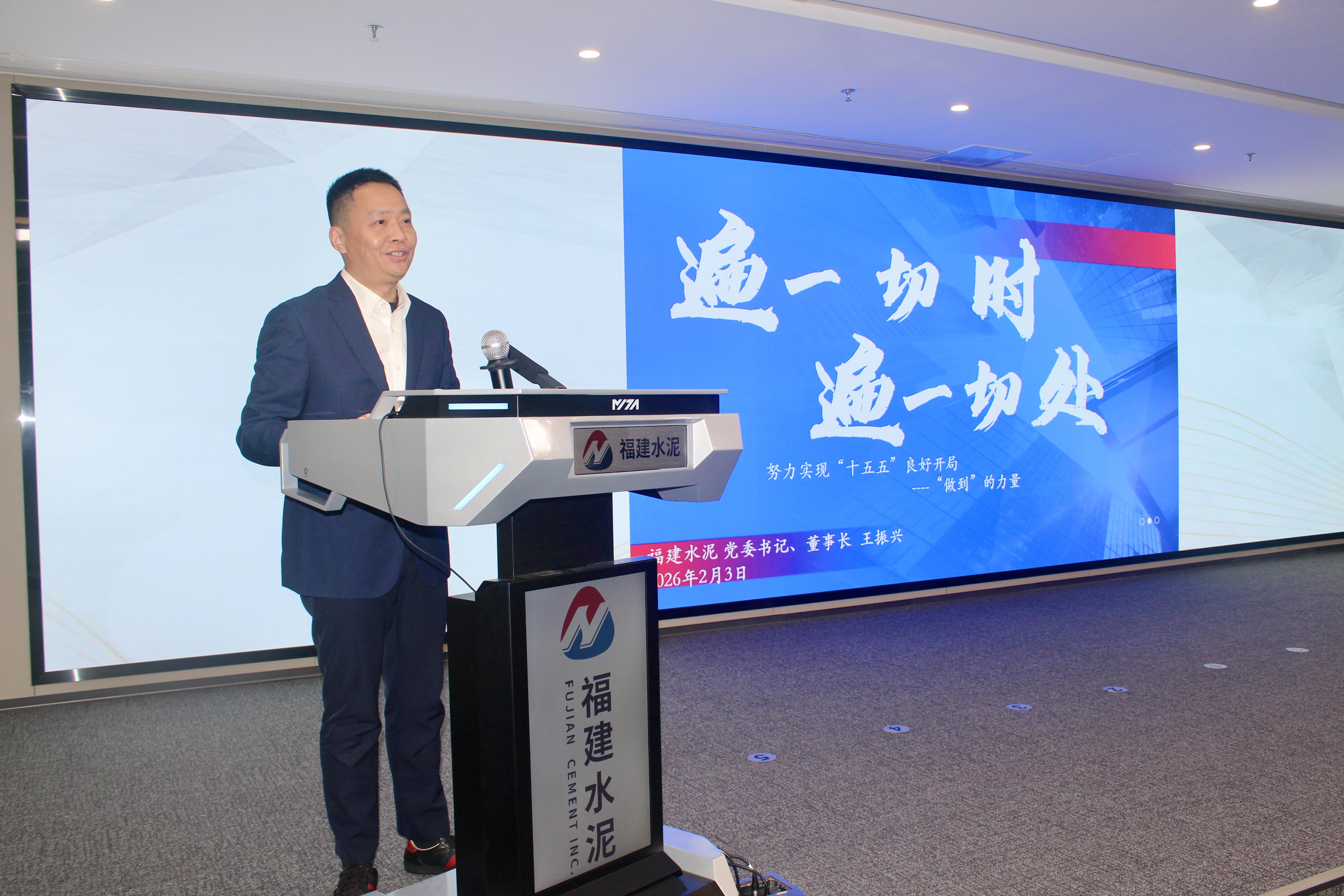 公司党委书记、董事长王振兴作题为《遍一切时 遍一切处 努力实现“十五五”良好开局——“做到”的力量》的总结讲话。从“回望过去、审视现在、展望明天”三个维度,为公司发展指明方向。王振兴指出,2025年,公司经营指标有进步、市场地位有提升、核心能力有增强、安全环保有担当、党建赋能有彰显,我们在“遍一切时、遍一切处”的道路上奋力前行,努力了一些工作,也遇到了一些挑战,更是收获了一些经验,赢得了一些底气。王振兴表示,2026年,无暇乐观亦无暇悲观。要清醒认识到水泥行业宏观环境不确定性加剧、行业指标持续走弱、市场需求矛盾凸显、竞争格局白热化等现实,认清这些挑战,不是要削弱我们的信心,而是为了让我们保持战略清醒,增强忧患意识,以更大的决心和勇气去迎接考验,把压力转化为深化改革、推动创新的内生动力。